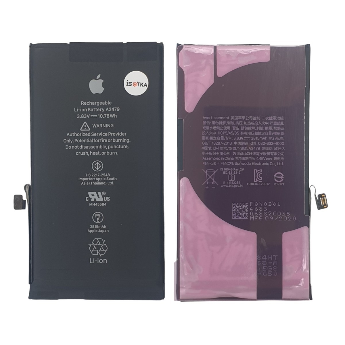 Аккумулятор для iPhone 12 / 12 Pro 2815mAh скотч для установки (подлинная) (без ошибки, без пайки)